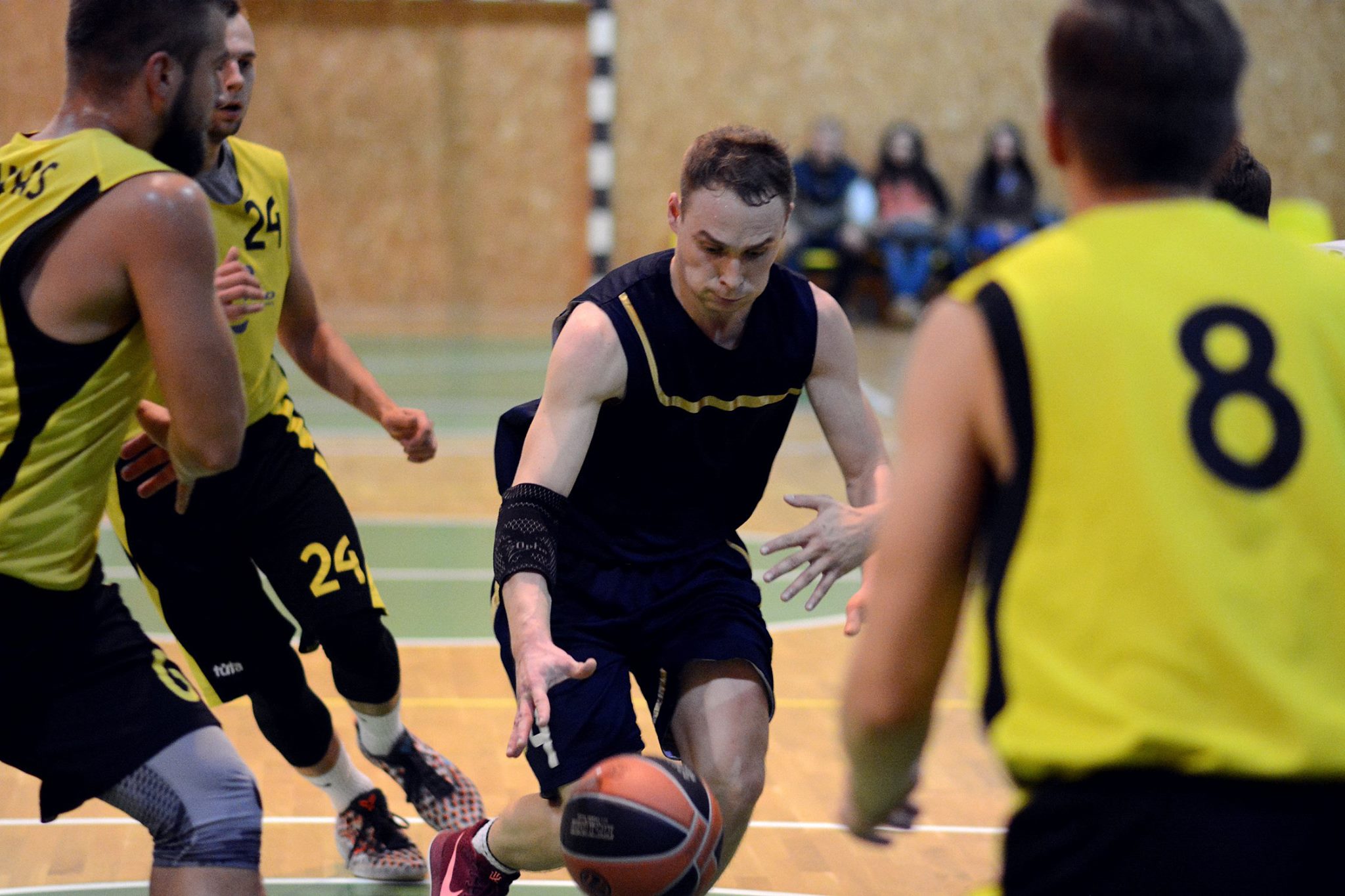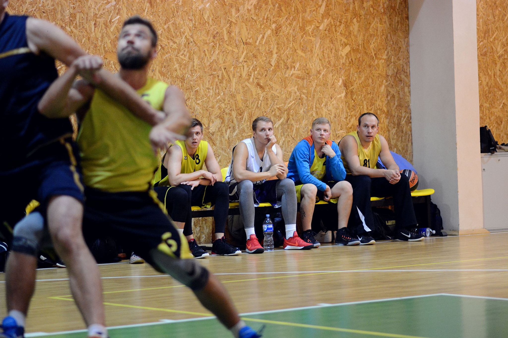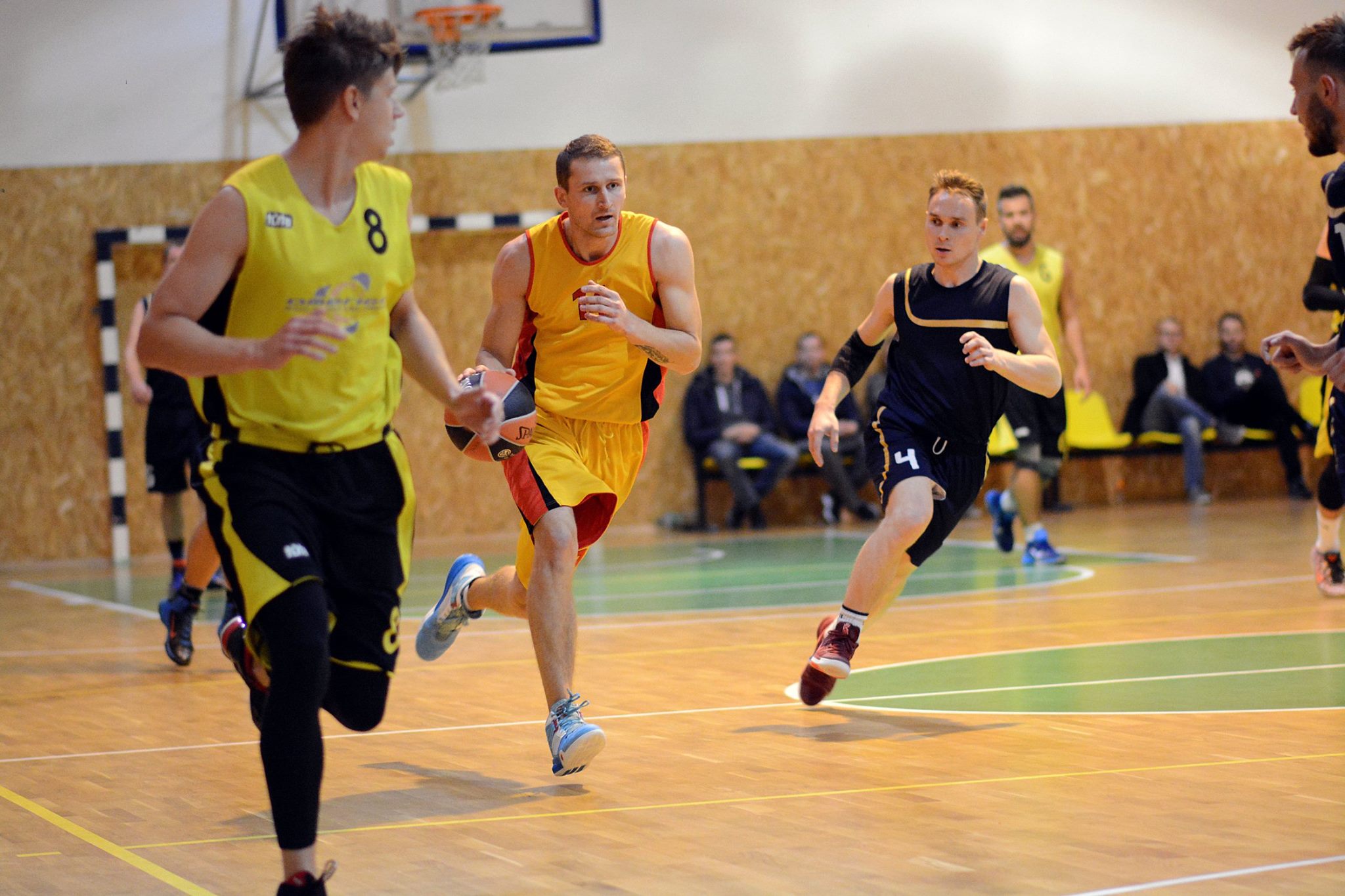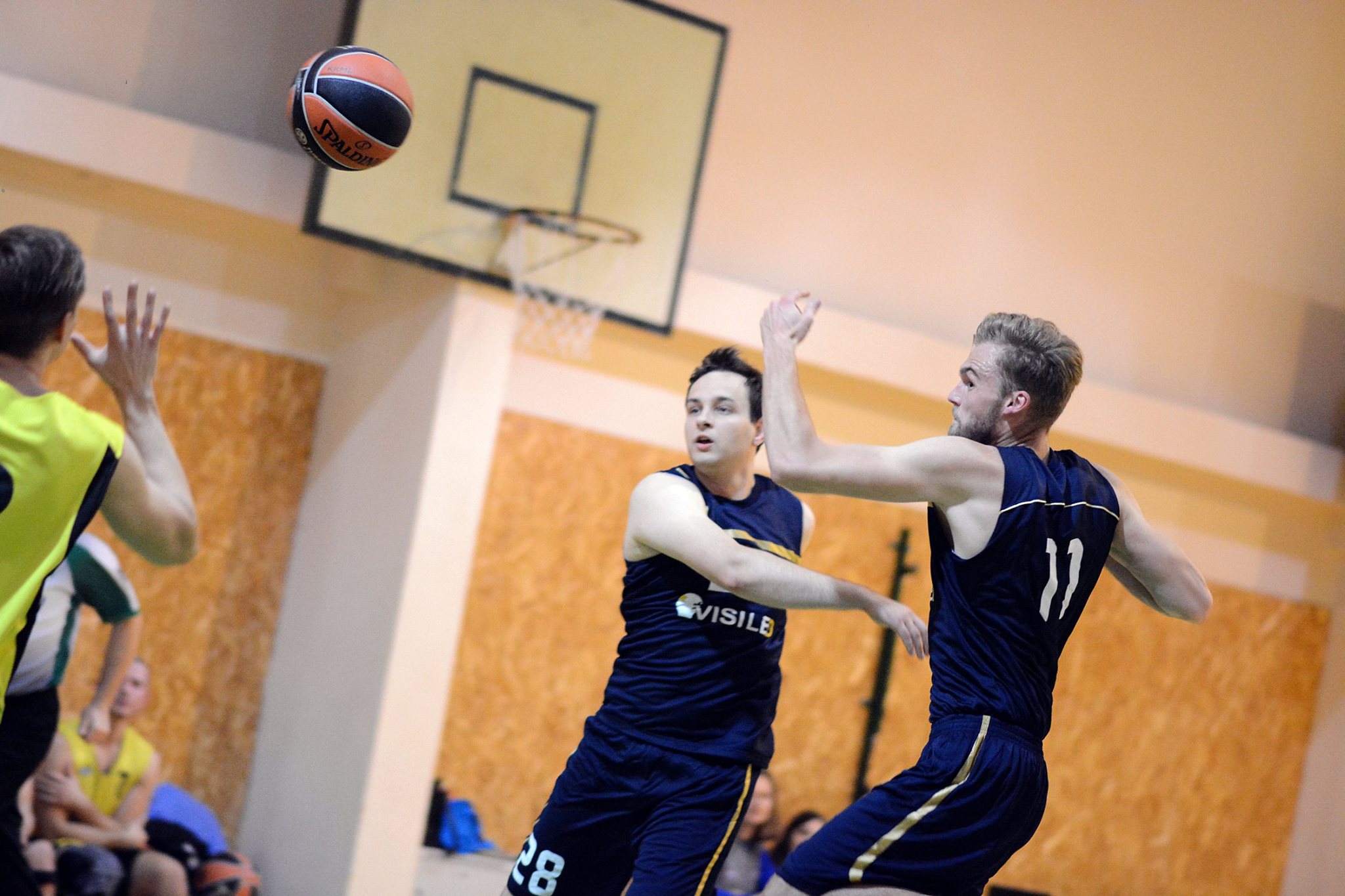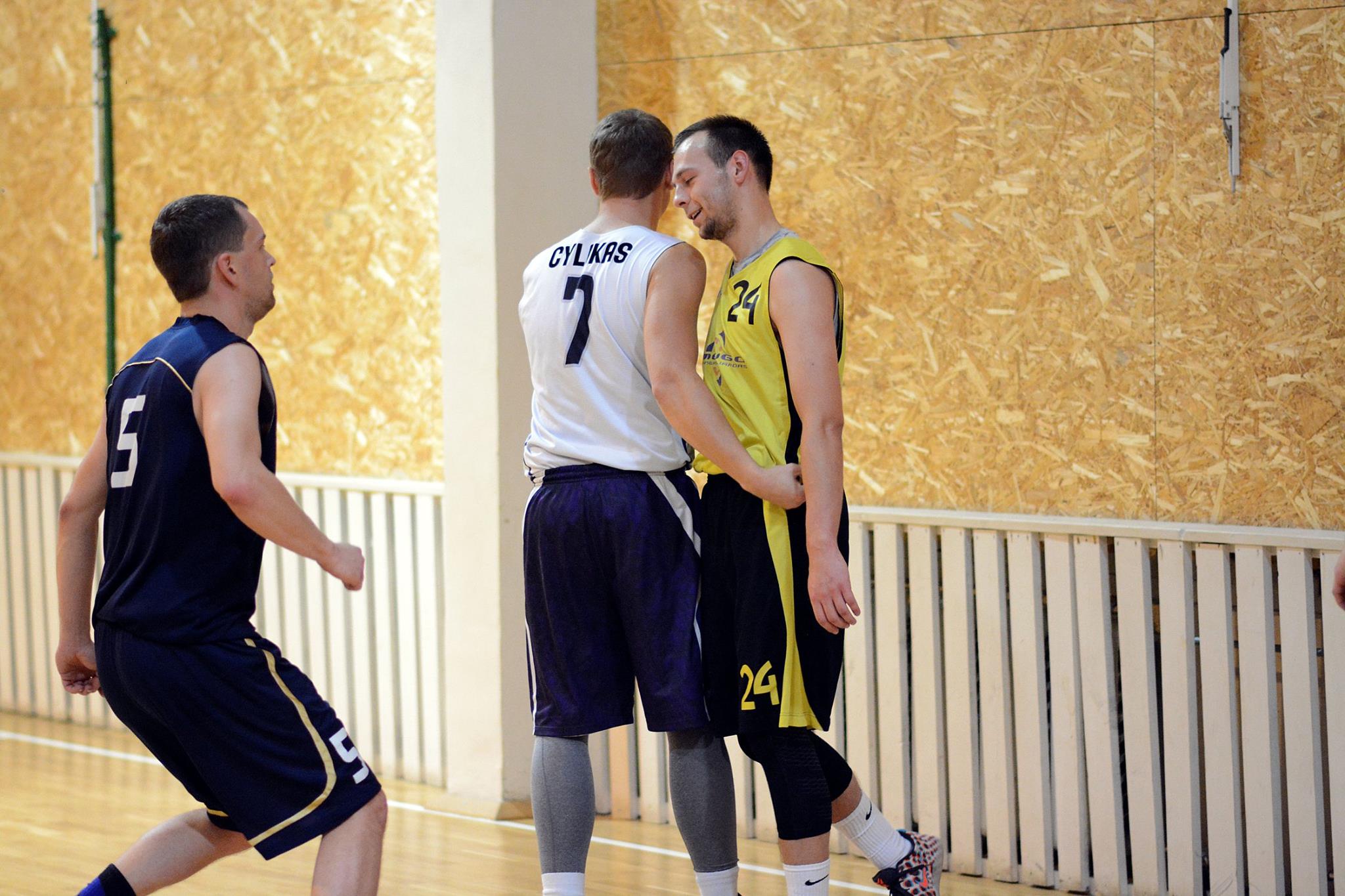 Draugų kompanija, mėgstanti krepšinį.