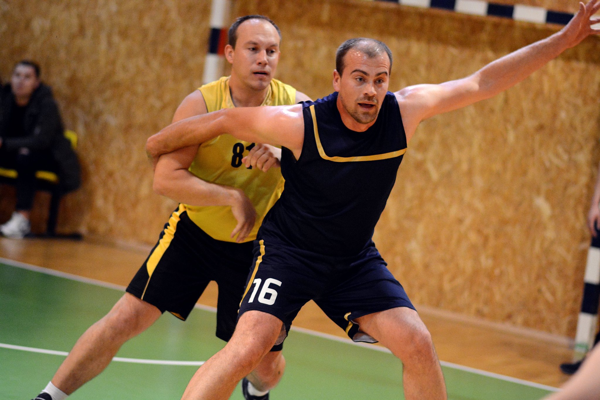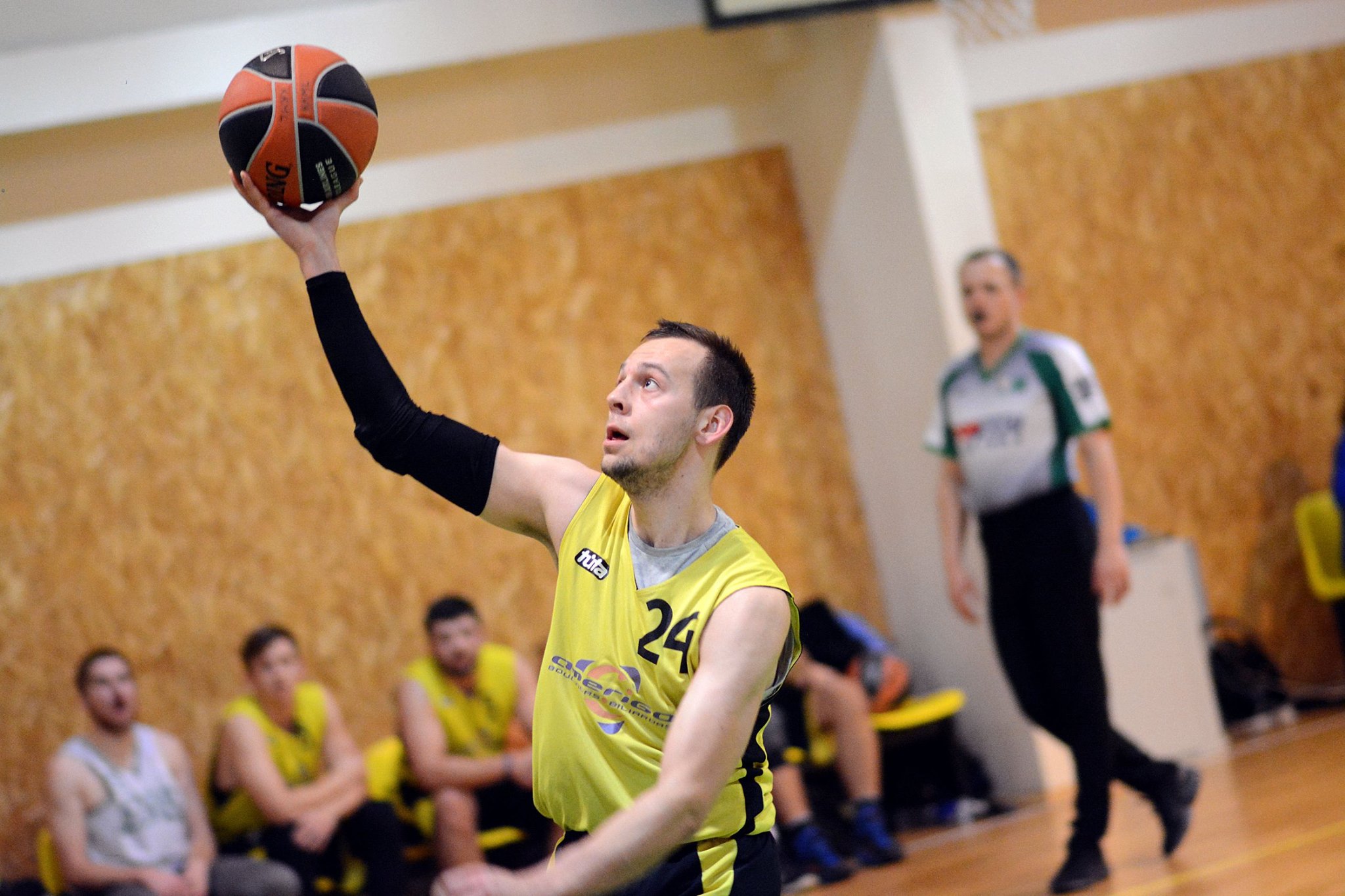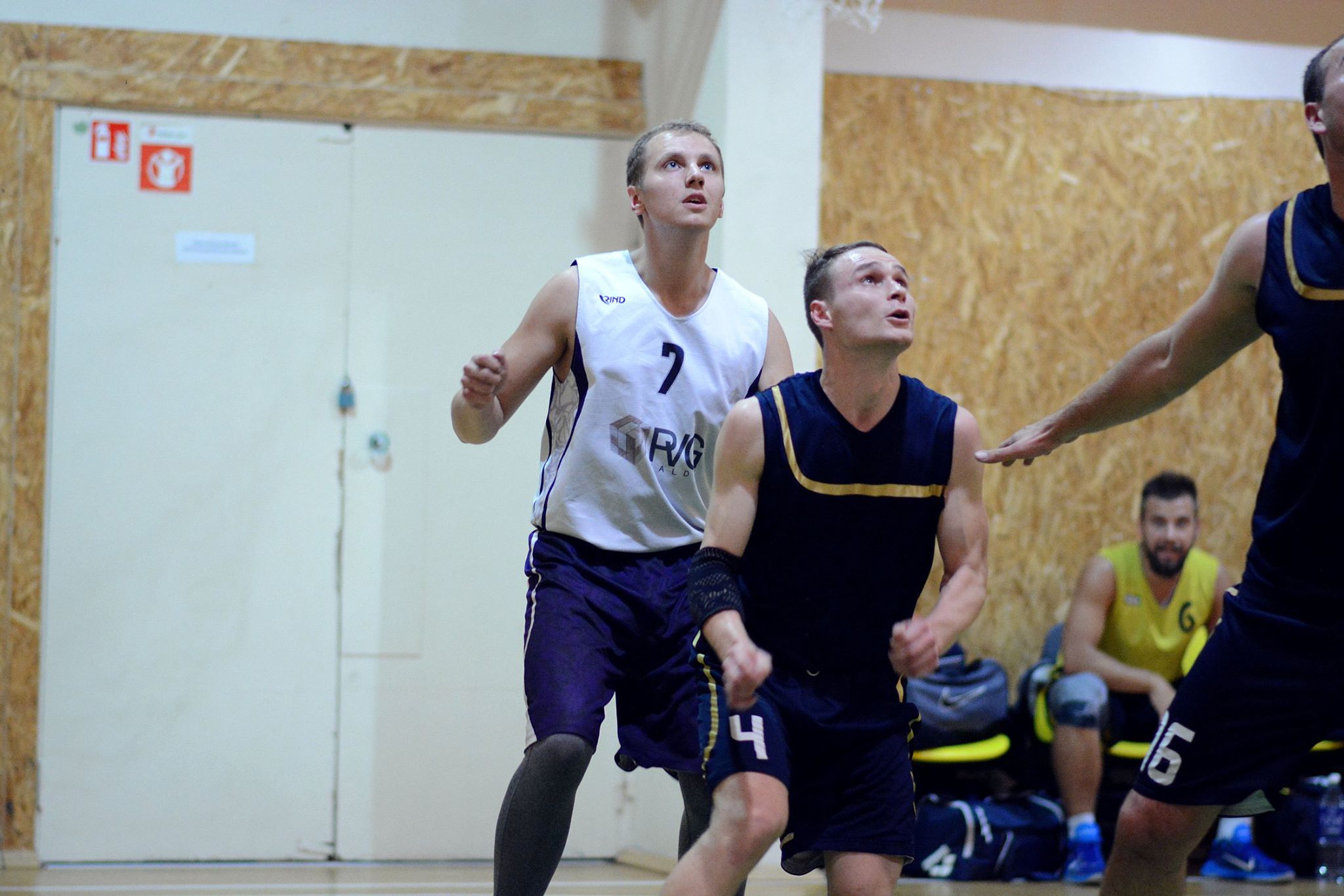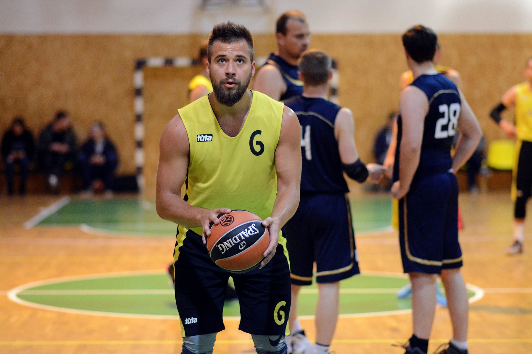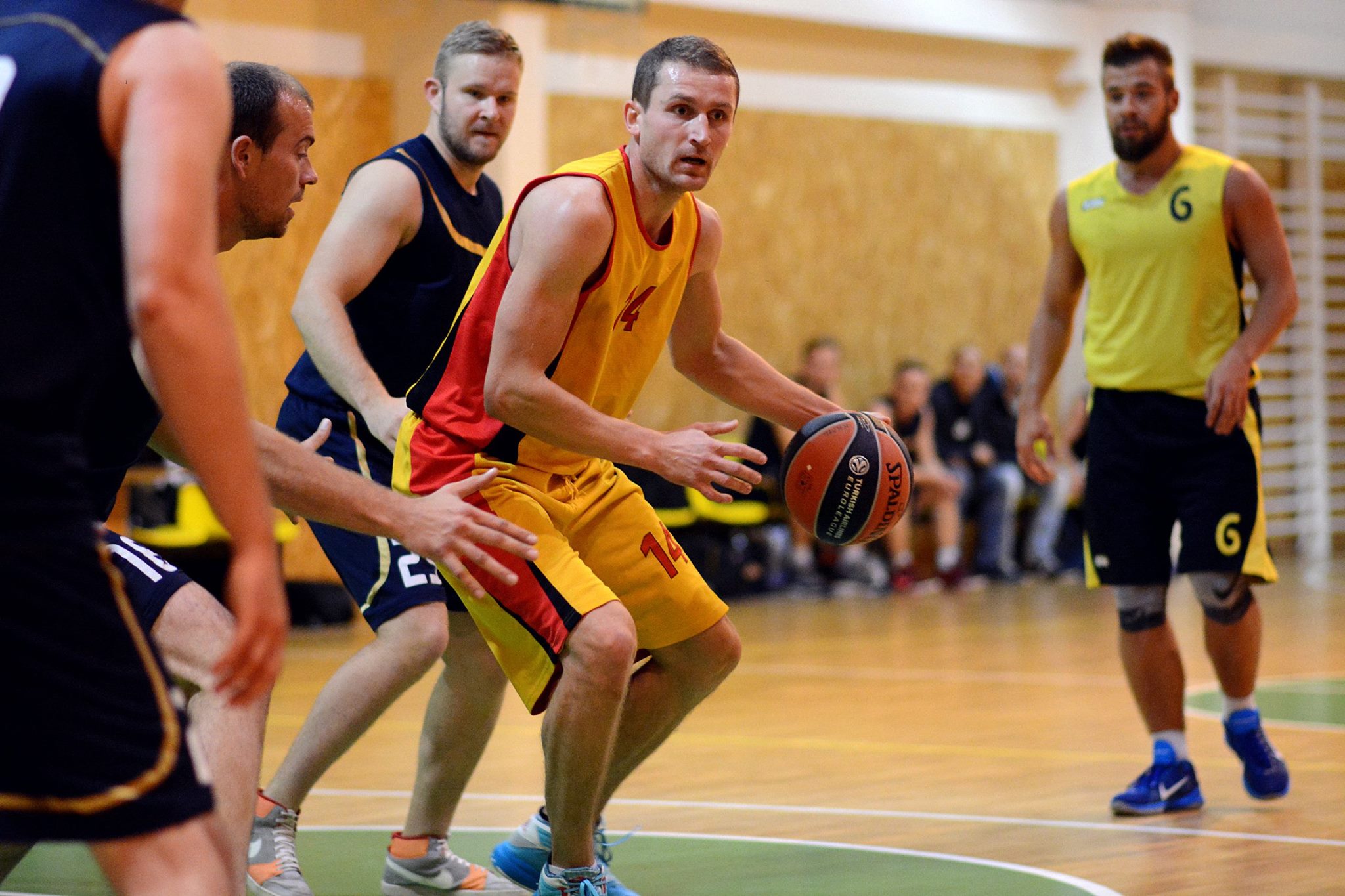 Draugų kompanija, mėgstanti krepšinį.