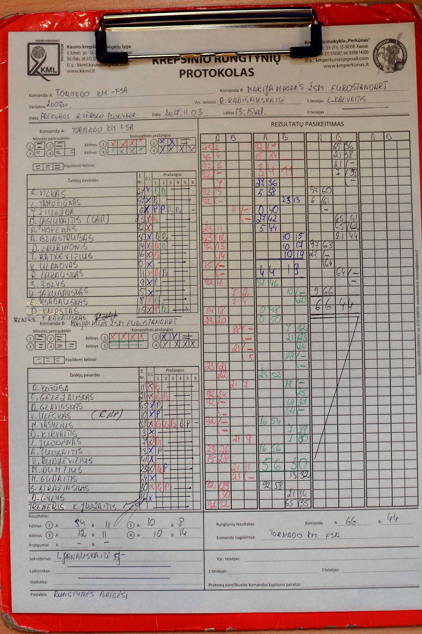 PTS: viso įmestų taškų skaičius, 1A: mesta baudų metimų, 1M: pataikyta baudos metimų, %1: baudų pataikymo procentas, 2A: mesta dvitaškių metimų, 2M: pataikyta dvitaškių metimų, %2: dvitaškių pataikymo procentas, 3A: mesta tritaškių metimų, 3M: pataikyta tritaškių metimų, %3: tritaškių pataikymo procentas, REB: atkovotų kamuolių skaičius, AS: rezultatyvūs perdavimai, TO: klaidos, ST: perimti kamuoliai, BS: blokuoti metimai, PF: pražangų kiekis, FD: išprovokuotos pražangos, TF: nesportinės / techninės pražangos, TF: nesportinės / techninės pražangos.